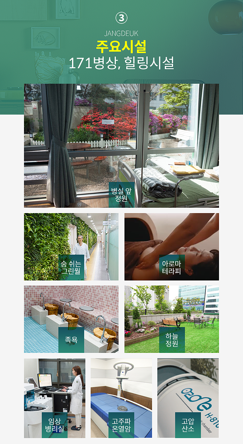 양방치료로는 고주파 온열암 치료와 고농도 비타민 요법을 비롯하여 셀레늄 요법과 미슬토 요법, 싸이모신 알파1 요법 등이 있으며, 면역 발효 한약과 면역 비훈요법, 면역 온열요법, 면역 약선 요법 등의 한방치료도 진행됩니다. 이외에도 앞에서 언급했던 면역 약선 요법과 아로마테라피, 족욕, 운동요법, 음악치료, 웃음치료 등의 다양한 보완요법이 진행되고 있습니다.