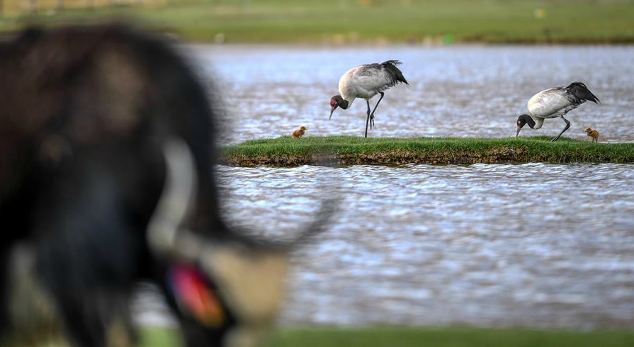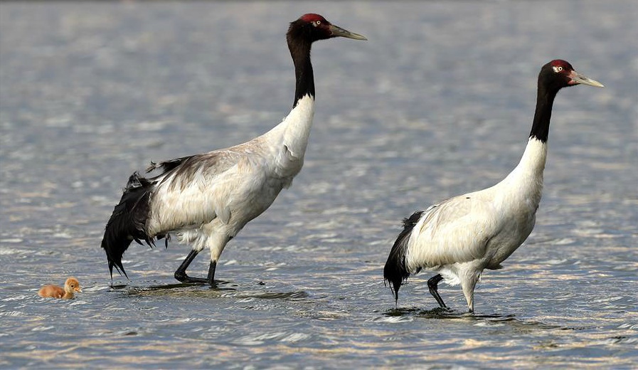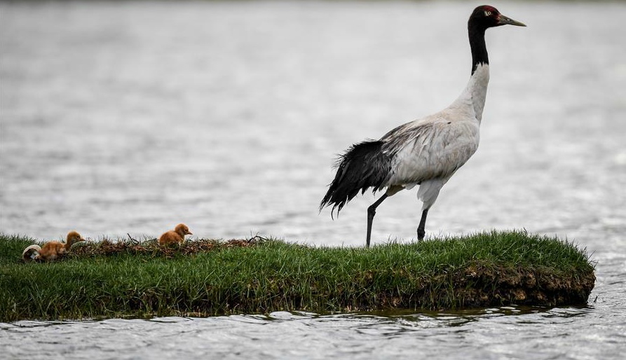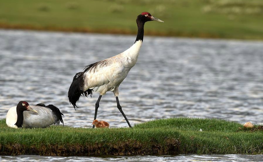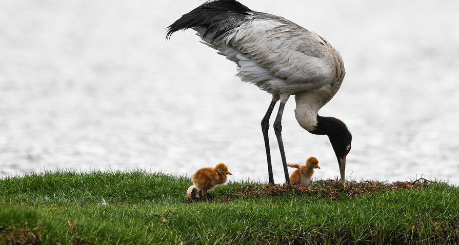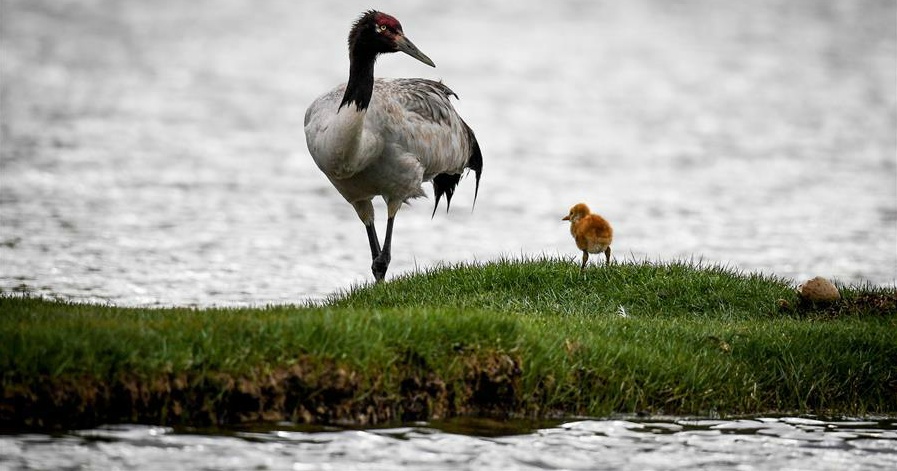 티베트 창탕 자연보호 지역에서 서식하고 있는 검은 목 두루미 새끼가 알을 깨고 태어난 모습이 언론에 의해 카메라에 포착되었습니다.