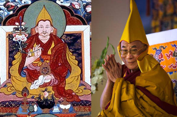 덕이 높은 사람들이란 뜻의 겔룩빠는 '쫑카빠'(1357~1419)를 개조로 합니다. 겔룩빠는 인도의 구루 아티샤 (982~1054)의 제자인 돔뙨이 창시한 카담빠의 가르침을 이어 받아 금욕적 계율, 철학, 토론을 중시했으며 티베트 라싸 인근 본산인 '간댄사원'에 주석한 1409년을 시작으로 합니다.