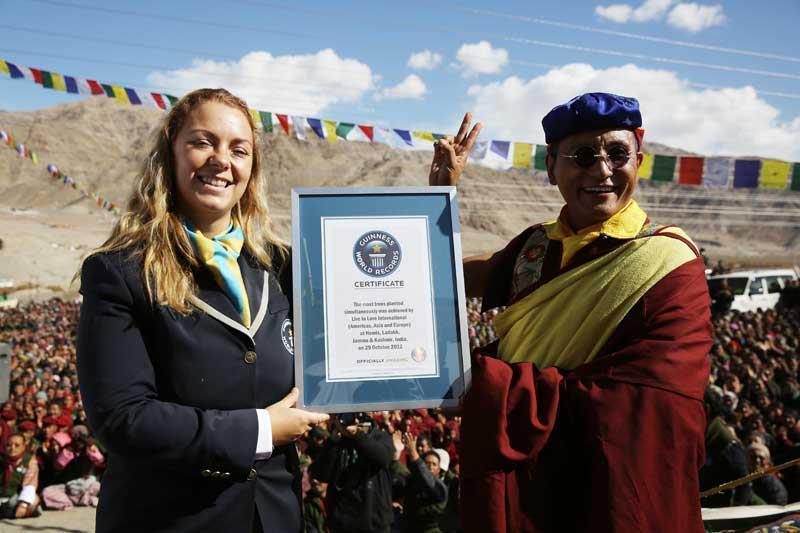 이때 9,814명이 동시에 99,103그루의 묘목을 50분 동안에 심어 새로운 기네스북 기록을 세웠습니다. 둑빠 까규는 2010년 당시 9,000명이 50,033그루를 33분 25초에 심어 '동시에 나무많이 심기' 기네스 기록을세웠고 다음 해 필리핀 필리핀 환경운동가들에 의해 기록(7,000명이 64,096그루 동시에 나무 많이 심기 )이 깨졌으나 둑빠 까규에서 2년뒤 다시 나무심기 행사를 열어 기록을 다시 썼씁니다.