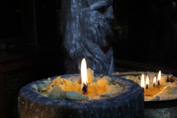 사원 내부를 밝히고 있는 티베트인들의 공양물 버터 램프
