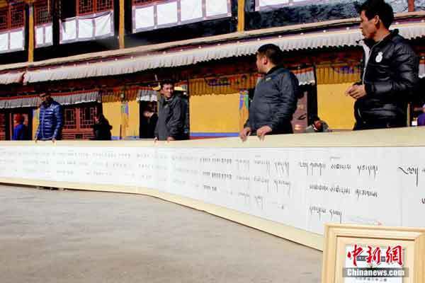 이 작품은 지난 해 8월 '세계에서 가장 긴 티베트어 서예 작품'으로 기네스북에 올라 화제가 되기도 했습니다.