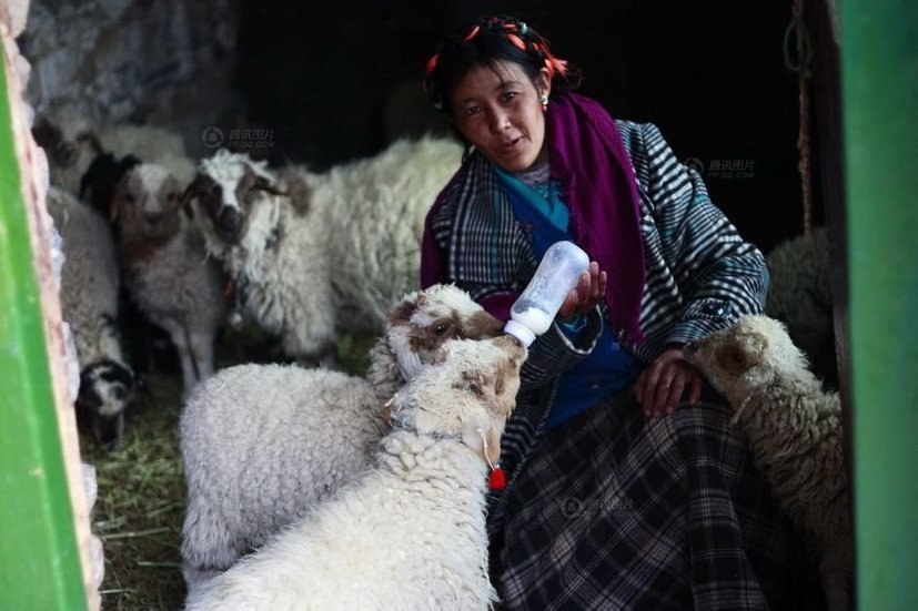 티베트 농촌에서는 농사외에도 염소, 양, 소 등의 가축을 기릅니다. 어린 양에게 우유를 주기 위해 준비하는 빼마씨