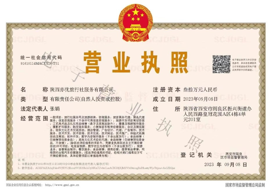 중국 시안 티티 레지던스는 정식으로 서안시의 영업허가를 받은 등록된 업체입니다. 한국도 그러하지만 숙박업 등록을 위해서는 소방 및 위생 등에 대한 기준을 충족하고 특수영업 허가를 받아야 합니다.
