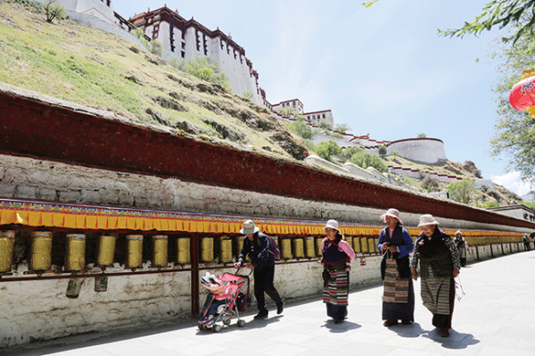 티벳 할머니들이 궁전을 돌고 있다.