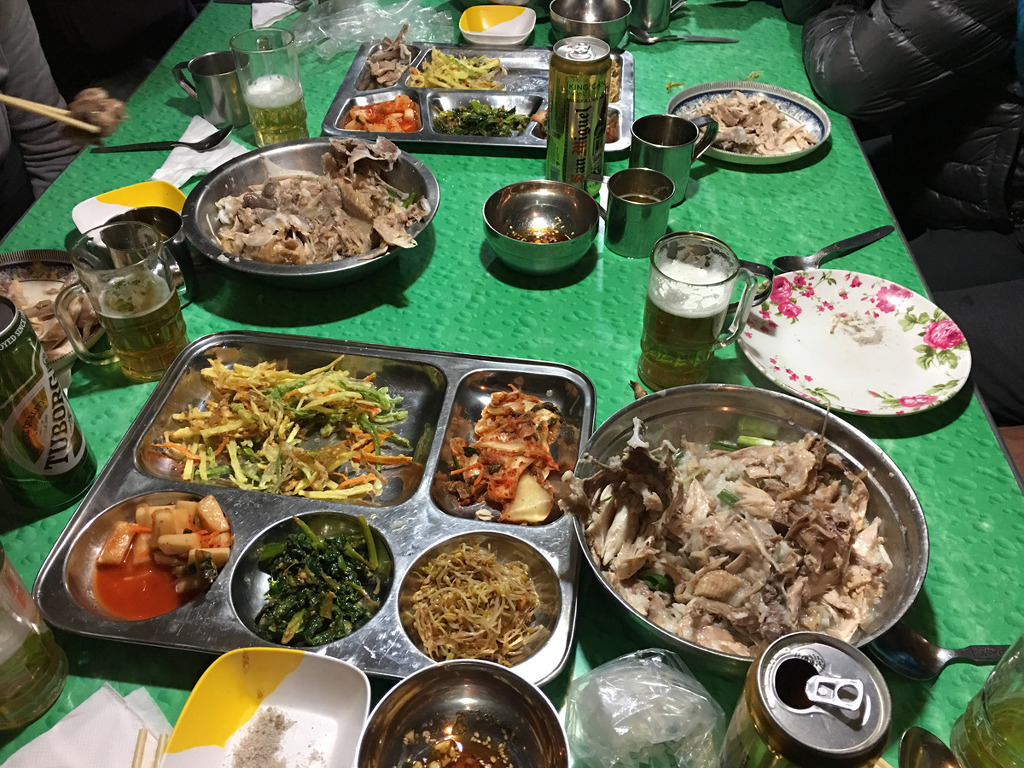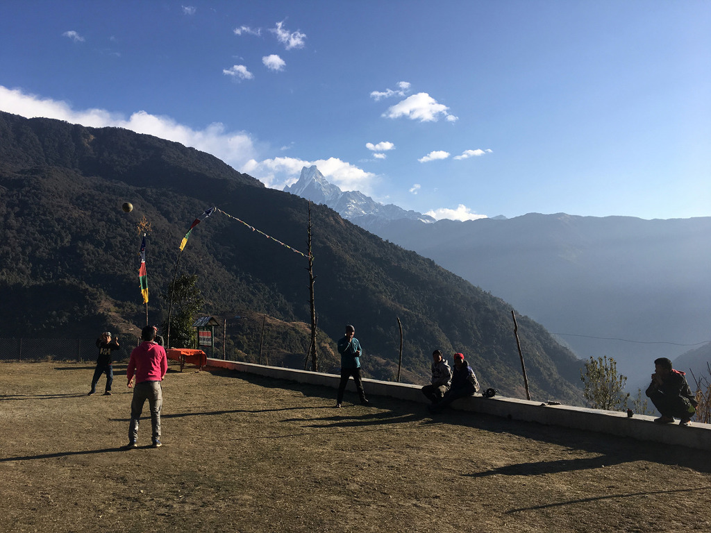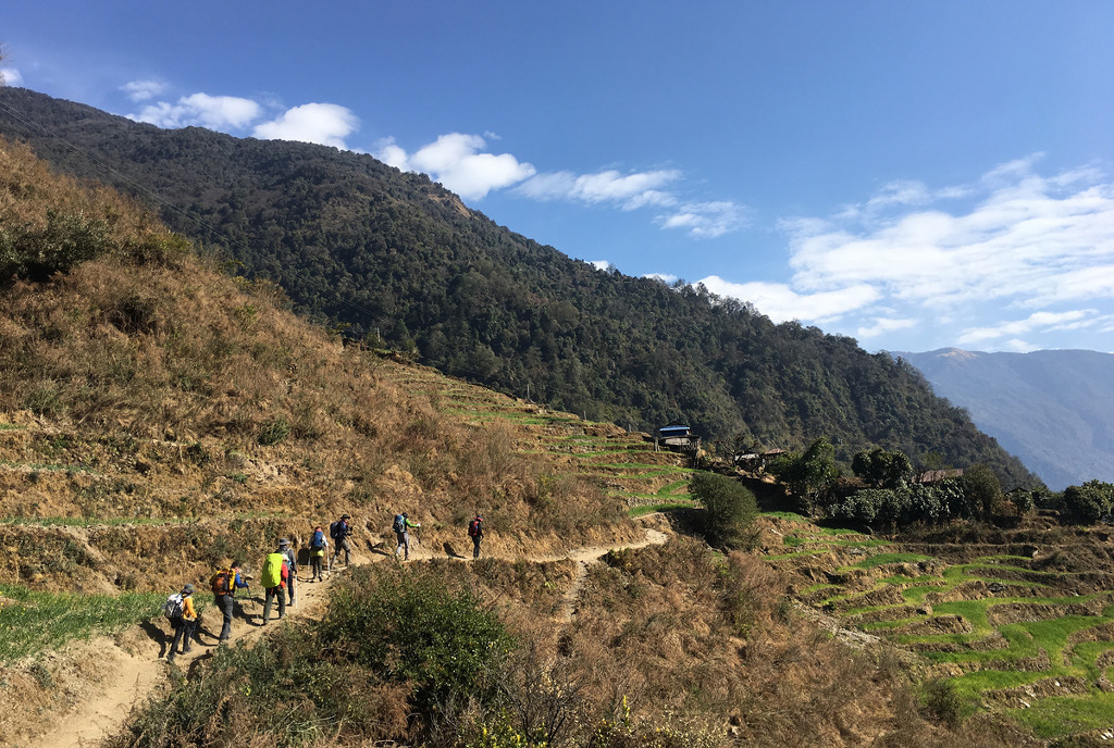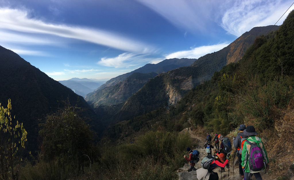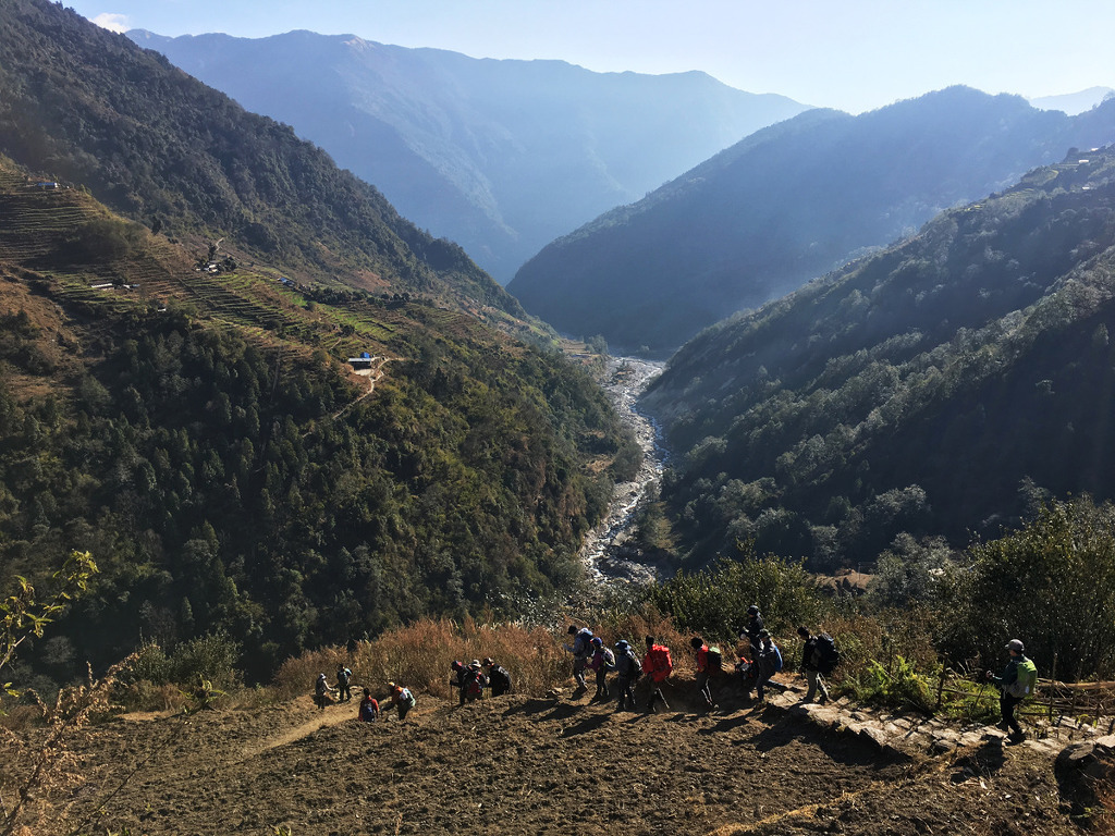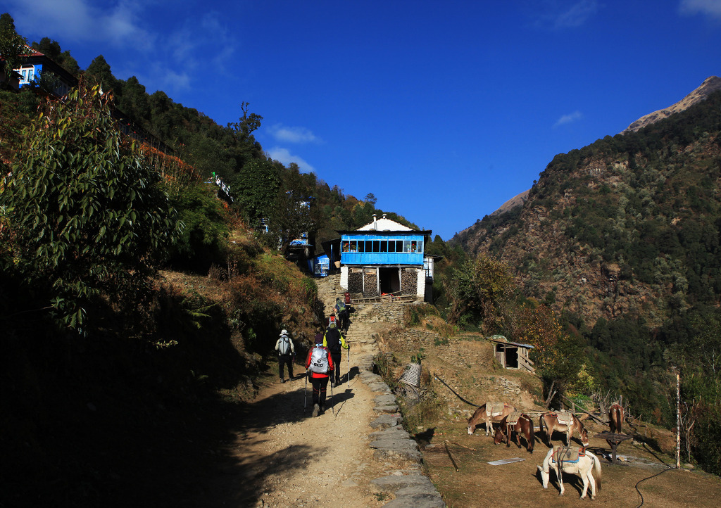 | -조식 후 -뱀부(Bamboo, 2,310m)-시누와(Sinuwa, 2,360m)-촘롱(Chomrong, 2,170m)-지누단다(Jhinu Danda, 1,780m) ▶촘롱에서 지누단다까지 가파른 내리막 길 ▶지누단다에서 노천 온천을 즐길 수 있습니다.(비용 1인/50루피) -트레킹 약 6시간 소요 -지누단다에서 스탭들과 마지막 밤을 지내며 파티 진행~ -투숙 및 휴식 |