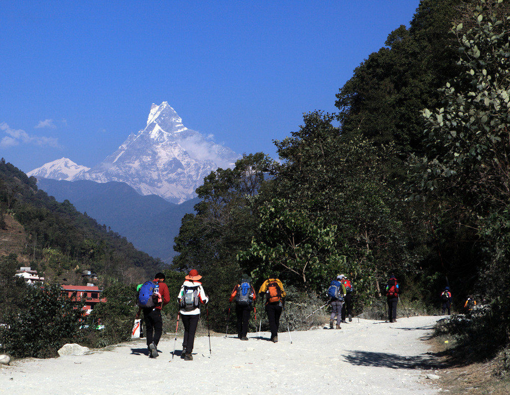 | -조식 후 -타다파니(Tadapani) -> 츄일레(Chuile, 2,245m) -> 촘롱(Chomrong, 2,170m) -> 시누와(Sinuwa, 2,360m) ▶내리막 길로 작은 마을들을 따라 내려 감 1시간 ▶계곡을 지나 맞은편 마을로 이어짐 1시간 ▶완만하고 경치가 좋은 안락한 길 2시간 ▶내리막 길로 계곡까지 내려간 후 반대편 능선위의 마을까지 긴 오르막 길 2시간반 -트레킹 약 8시간 소요 -투숙 및 휴식 |