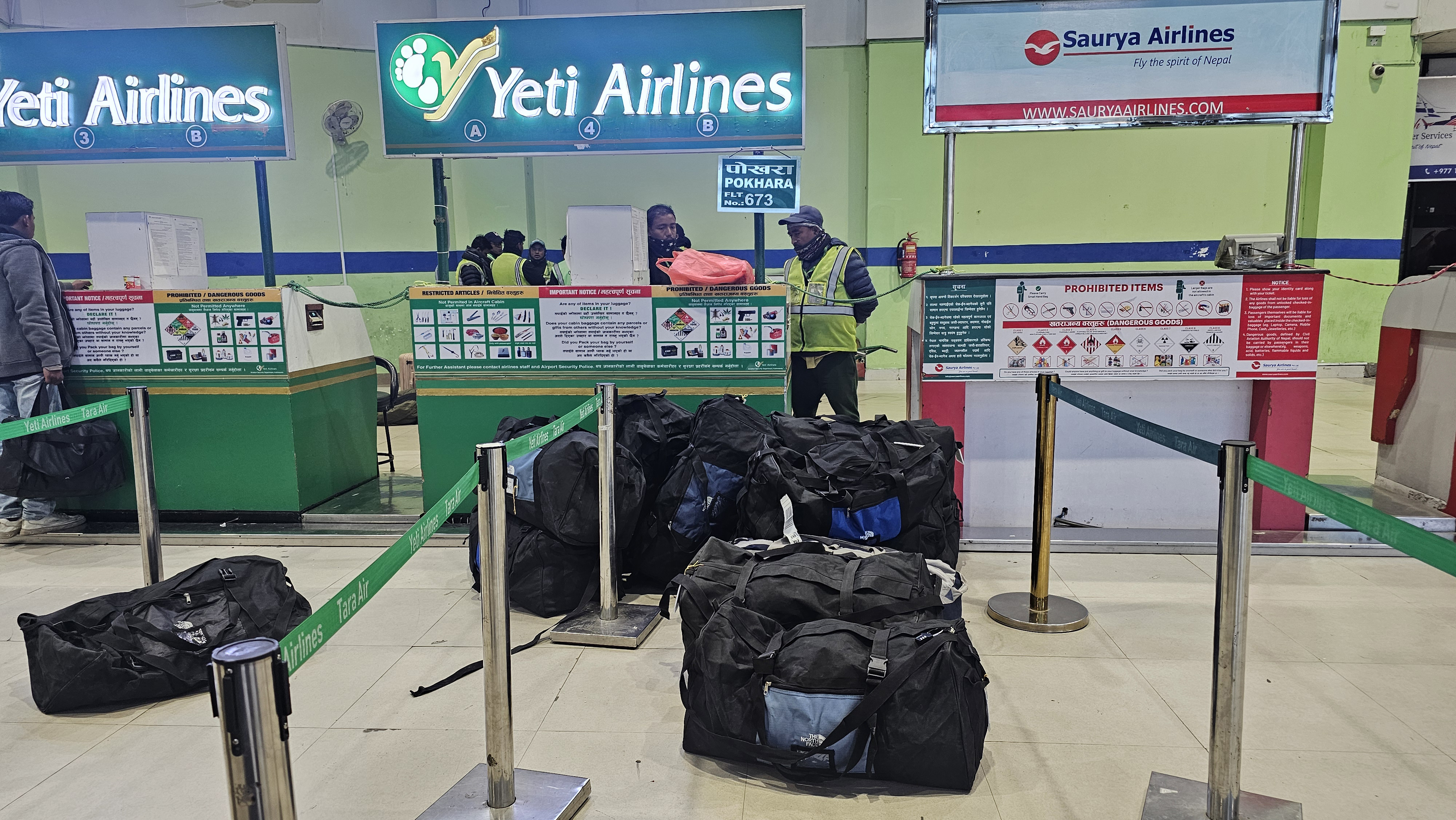 포카라로 가기 위해 카트만두 공항 국내선으로 진입