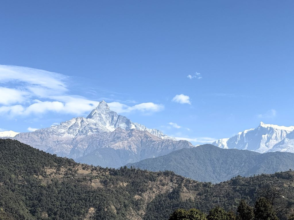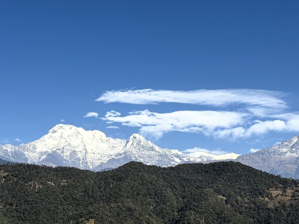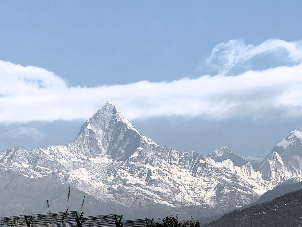 포카라 공항에서 아득히 보이던 마차푸차레, 안나푸르나 남봉, 히운출리가