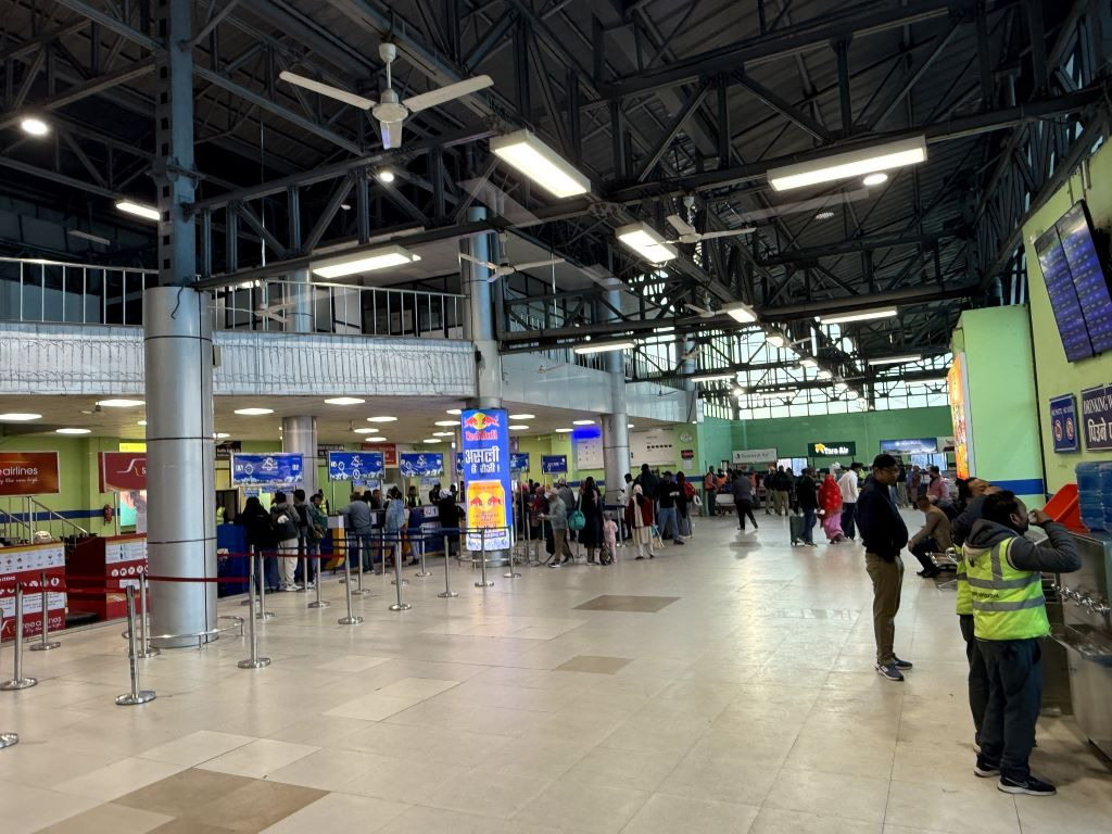 설산들이 병풍처럼 둘러선 풍경 속에 자리한 포카라 공항 청사의 아치가 참 잘 어울린다.