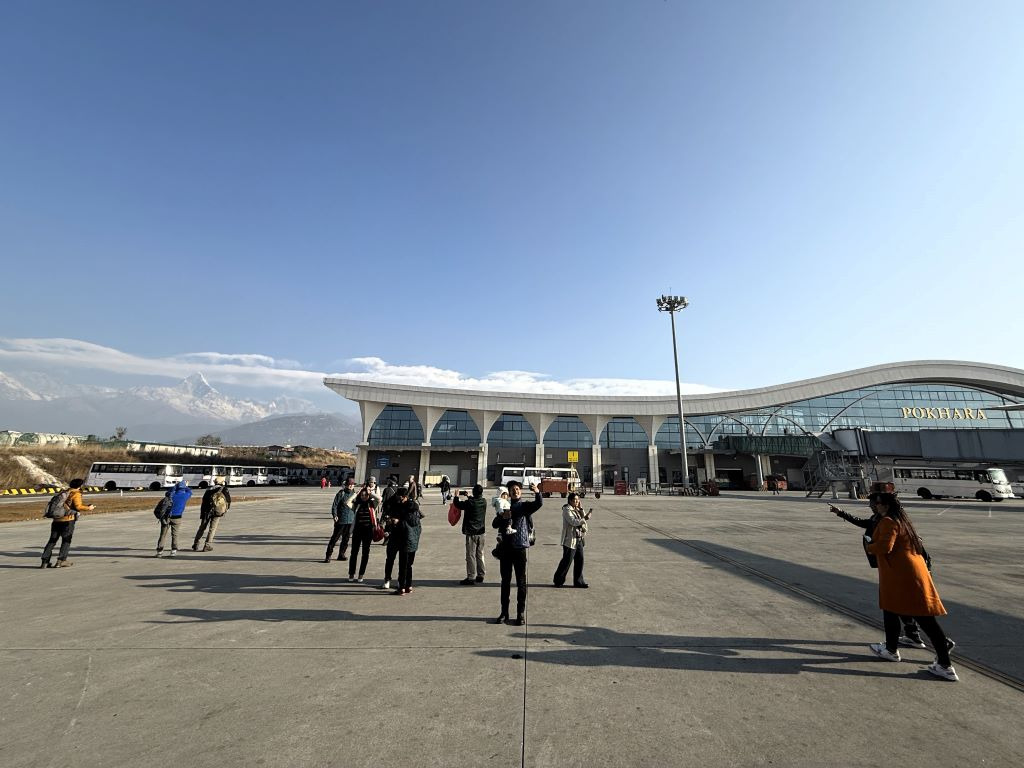 비행기는 새로 만든 포카라 공항에 착륙한다.