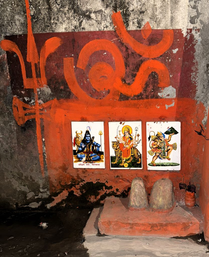 신단 안에는 우주의 본질과 시바의 힘을 상징하는 트리슈라(삼지창)와 "옴(ॐ)"자가 그려져 있다.