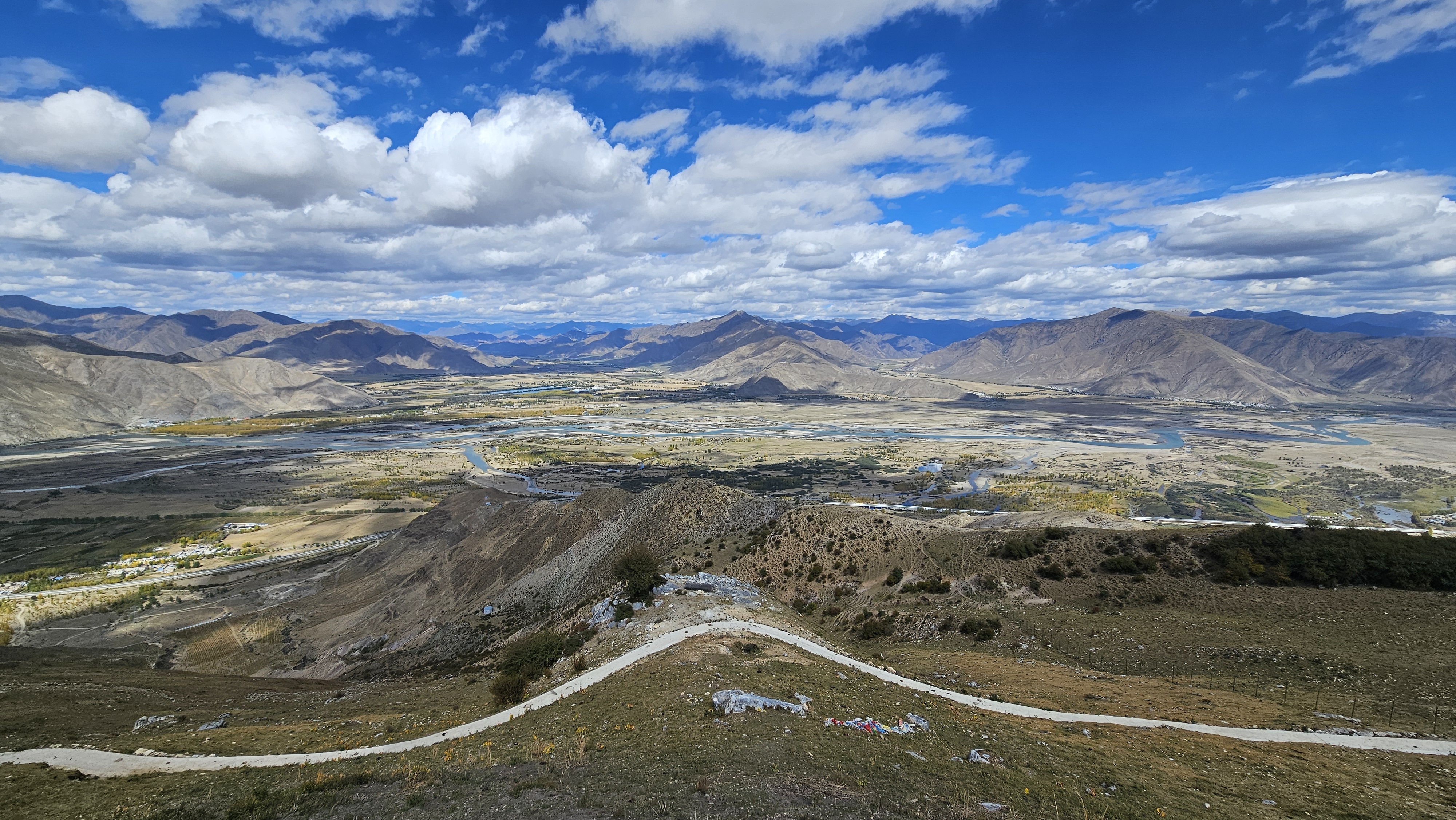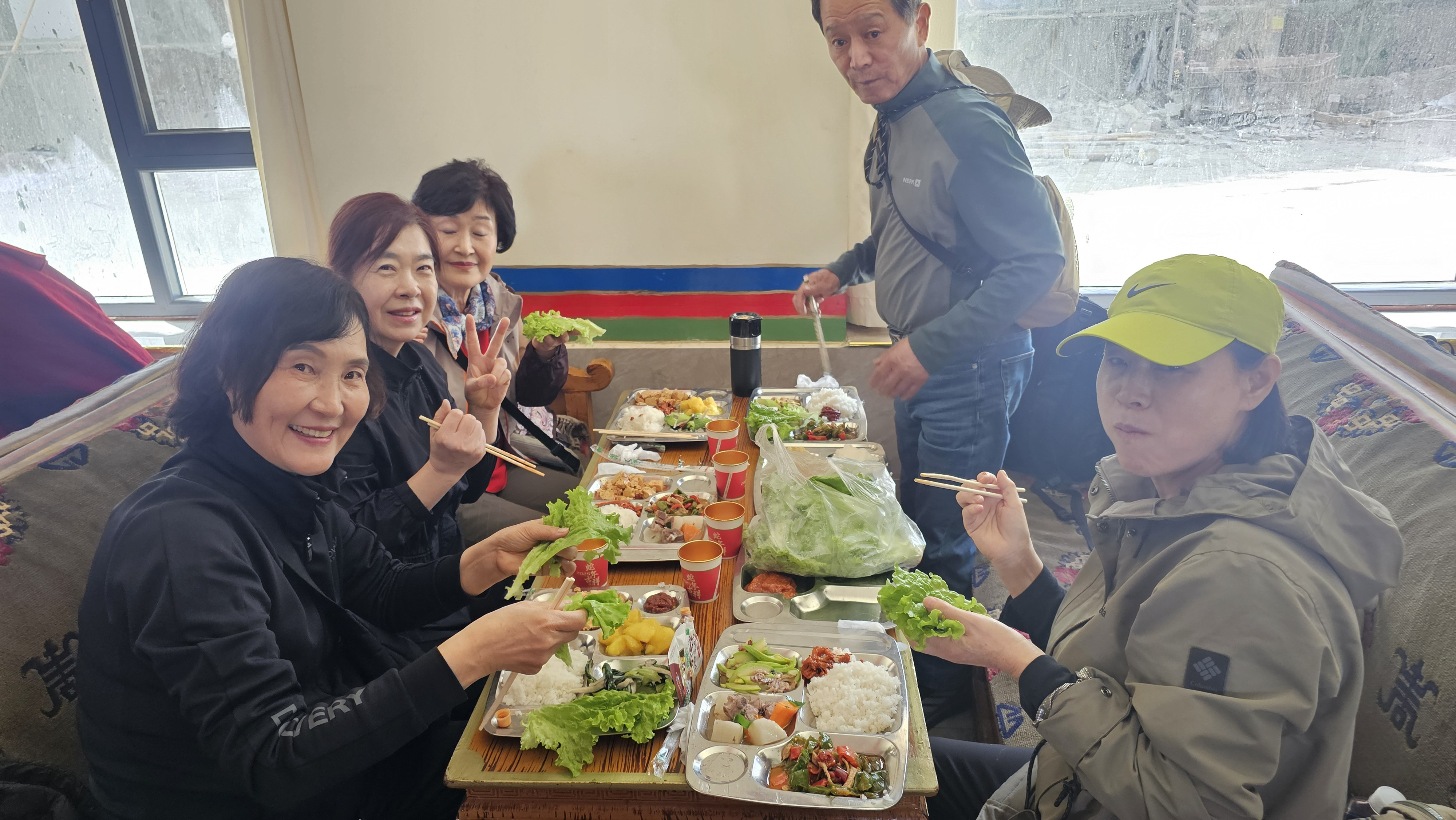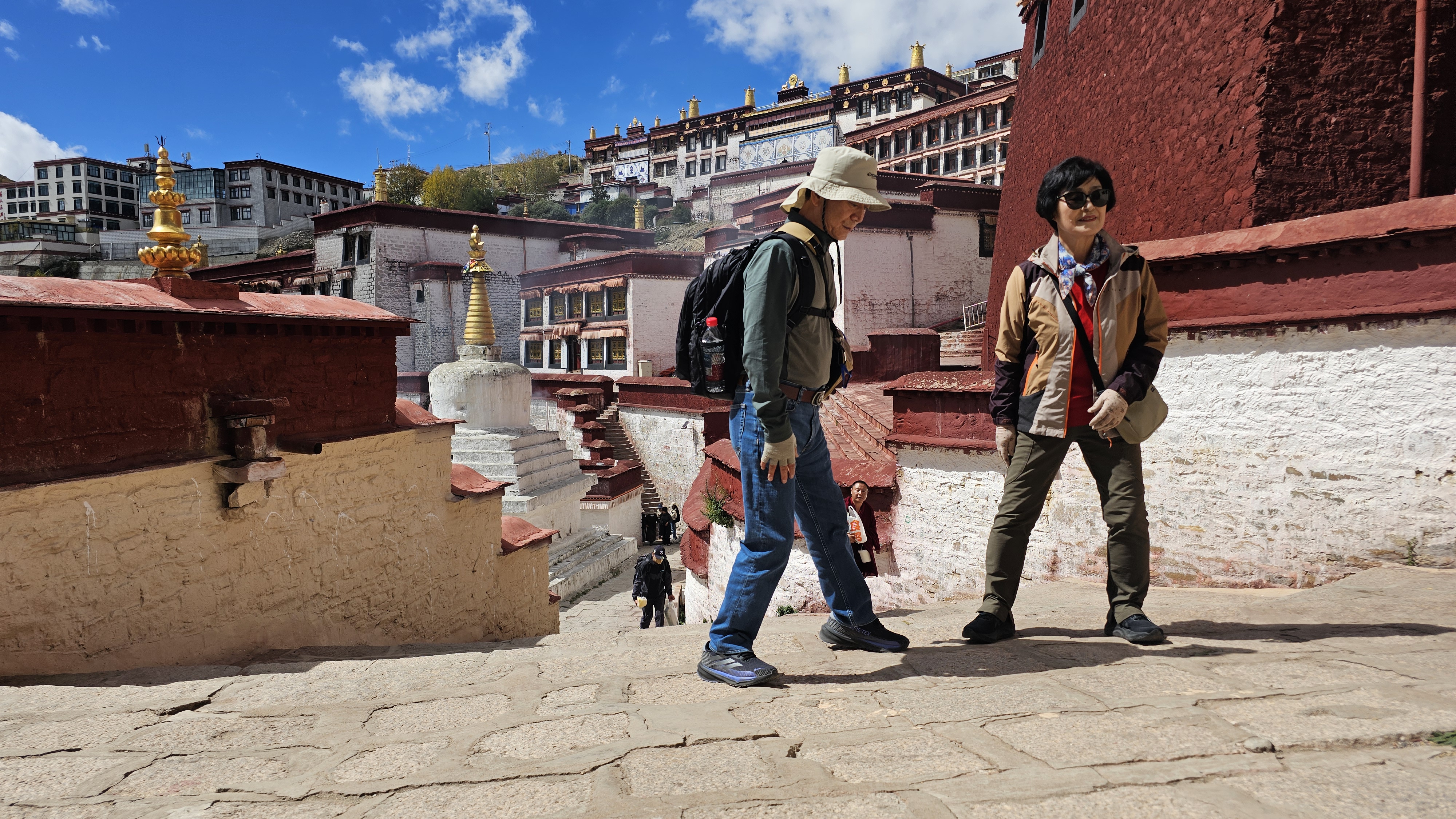 | "라싸의 푸른 하늘 아래, 마음이 맑아진 날" 아침 식사를 하러 1층으로 내려가니 모두의 얼굴이 한결 밝아져 있었다. 어제 치료 덕분인지 표정이 맑고 생기가 돌았다. 티베트의 차가운 공기마저 오늘은 부드럽게 느껴졌다. 오늘의 일정은 간덴사원(Ganden Monastery). 라싸에서 약 60km 떨어진 곳, 해발 4,500m 고지 위에 자리한 이곳은, 티베트 불교 겔룩파(格鲁派)의 6대 사원 가운데서도 으뜸이라 불린다. 무엇보다 겔룩파의 창시자 종카파(宗喀巴) 대사가 직접 창건한 사원으로, 교학과 수행의 근원이자 겔룩파 정신의 심장이라 할 수 있다. 완만한 산길을 따라 오르는 간덴 트레킹이 시작됐다. 고산 적응을 위해 천천히, 숨을 고르며 걸었다. 라싸강이 발아래 유유히 흐르고, 그 건너편으로는 평원이 탁 트여 있었다. 눈앞에 펼쳐진 티베트의 풍경은 마치 세상과 나 사이의 경계가 사라진 듯했다. 탁 트인 하늘과 끝없는 산맥, 그리고 바람. 가슴속 깊이 맺혀 있던 무언가가 스르르 풀려나가는 느낌이었다. 트레킹을 마치고 사원 안으로 들어섰다. 붉은 담벼락 사이로 스님들의 염송 소리가 울려 퍼지고, 향냄새가 은은히 퍼졌다. 사원을 한 바퀴 돌며 종카파의 좌상을 뵙고 나니 마음이 잔잔해졌다. 점심은 사원 내 식당에서 먹었다. 라싸에서 가이드가 직접 가져온 상추로 쌈을 싸 먹었는데, 고동안 열차 안에서 제대로 식사하지 못했던 터라 그 맛이 더없이 꿀맛이었다. 간단한 식사였지만, 그 순간만큼은 진수성찬보다 더 행복했다. 식사 후 라싸로 돌아와, 도시 남쪽 산기슭의 전망 포인트에 올랐다. 푸른 하늘 아래 붉은 포탈라궁이 웅장하게 서 있고, 라싸 시내가 한눈에 내려다보였다. 사진을 찍으며 모두들 “드디어 라싸에 왔구나” 하는 실감을 나눴다. 호텔로 돌아오는 길에는 바코르 시장에 들렀다. 탱화를 그릴 때 쓰는 천연석채를 가공하는 공장을 구경하고, 정교한 불화 작품도 감상했다. 골목을 따라 상점들이 늘어선 시장에는 향 냄새와 사람들의 웃음소리가 뒤섞여 있었다. 그 사이를 천천히 걸으며 기념품도 사고, 여행의 여운을 즐겼다. 저녁 무렵 호텔로 돌아오는 길, 멀리서 포탈라궁의 붉은 벽이 석양에 물들고 있었다. 오늘 하루, 티베트의 하늘은 그 어느 때보다도 깊고 평화로웠다. |