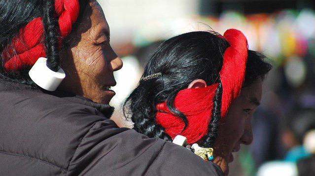 ↑ 머리에 붉은 실타래를 맨 사람들, 캄빠(캄지방 사람들)라고 불린다. (사진=히말라야 여행동호회)