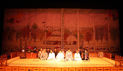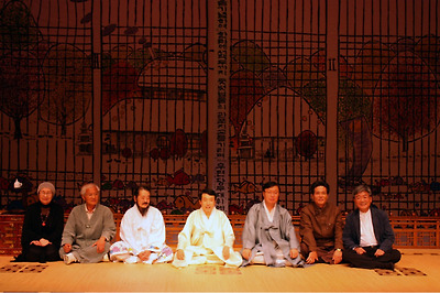 거문고를 현금(玄琴)이라고도 부릅니다. 그러니까 청각예술인 ‘검은 소리'와 시각예술인 ‘먹은 먹(墨)'이라는 두 ‘검은’ 요소가, ‘하얀’ 광목이라는, 완전히 대비되는 색깔의 공간위에서 동일한 시간에서 서로 어울려 절묘한 하모니를 연출한 작품 같습니다. (운운)
