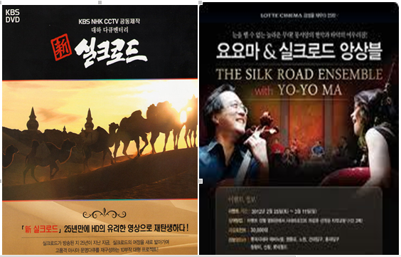 우리나라에서도 드디어 KBS와 NHK-CCTV 공동제작하여 2005년 10월부터 2006년 3월까지 10부작으로 방영된 대하다큐멘터리 <신 실크로드>의 메인타이틀곡도 빼어 놓을 수 없다. 첼리스트 요요마(Yoyoma)가 총감독을 맡아 30명의 '실크로드 앙상블' 멤버들과 함께 연주한 곡인데, 비파(琵琶, 중국), 타블라스(tablas, 이슬람 북), 케만체(kemanche 중동 현악기), 두둑(duduk 아르메니아), 샤쿠하치(shakuhachi 일본 피리)등 10개 이상의 전통악기들과 아제르바이잔의 전통노래들이 연주에 활용됐다. 다양한 악기소리를 결합해 전통에 뿌리를 두면서도 새로운 음악의 지평을 여는 가능성을 제시했다는 평가를 받고 있다.