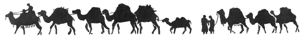 <실크로드 고전 여행기 총서>의 로고로 쓰인 것이다. 기존의 낙타 로고들이 관광객을 돈 받고 태워주는 이미지인 것에 비교하여 필자는 무거운 짐을 실은 실제의 대상들의 모습을 강조하였다.