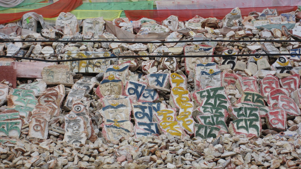 한편 불교도나 자이나교도들의 의례에서도 매우 중요한 비중을 차지하고 있다. “옴 마니 빠드마 훔” 이 바로 대표적인 용례이다. 이를 우리불교에서는 <육자대명왕진언(六字大明王眞言)>으로 무엇보다 중요하게 사용되고 있다. 그리고 자비의 화신인 관세음보살의 기원이 담겨 있기에 티베트불교를 대표할 정도로 유명한 만뜨라이기도 하다.