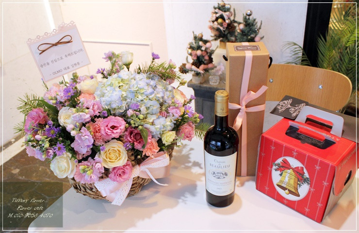구성: 투썸플레이스 케이크+ 와인 +생화 꽃바구니 +무료배송