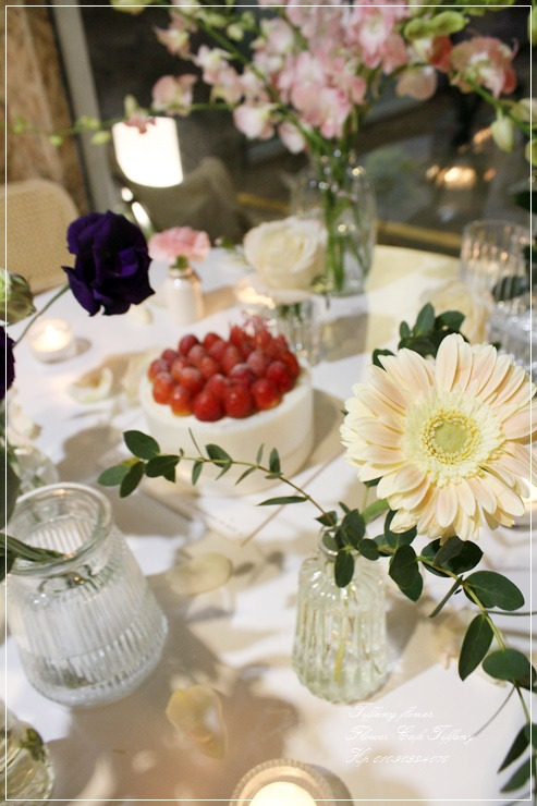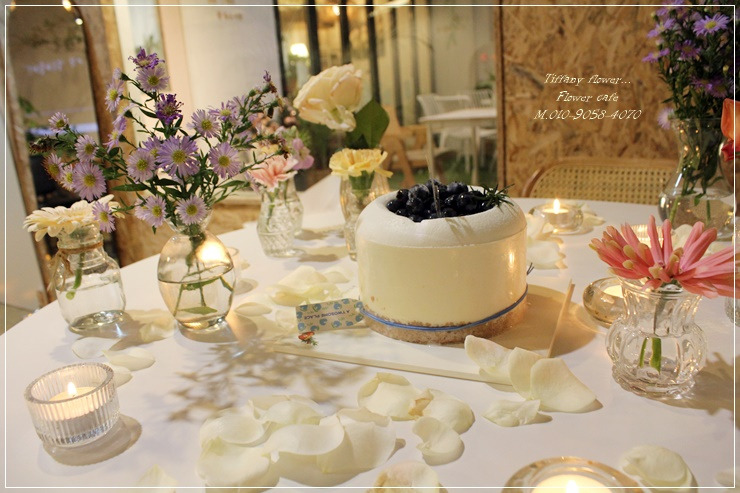 테이블에 생화데코와 케익 음료 까지 함께 포함된 가격입니다.