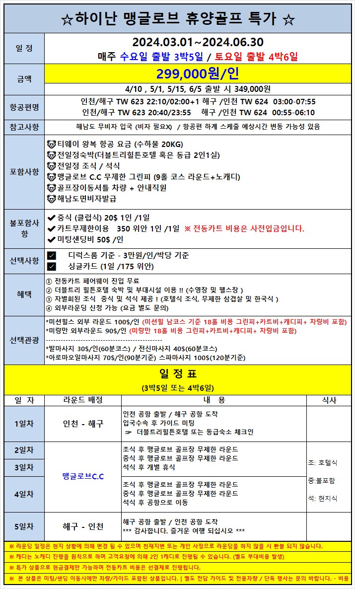 ๐[3์~6์][299,000์][๋ฏธ์น์ดํน๊ฐ][ํญ๊ณตํฌํจ][ํ์ด๋๊ณจํ][3๋ฐ5์ผ][4๋ฐ6์ผ]