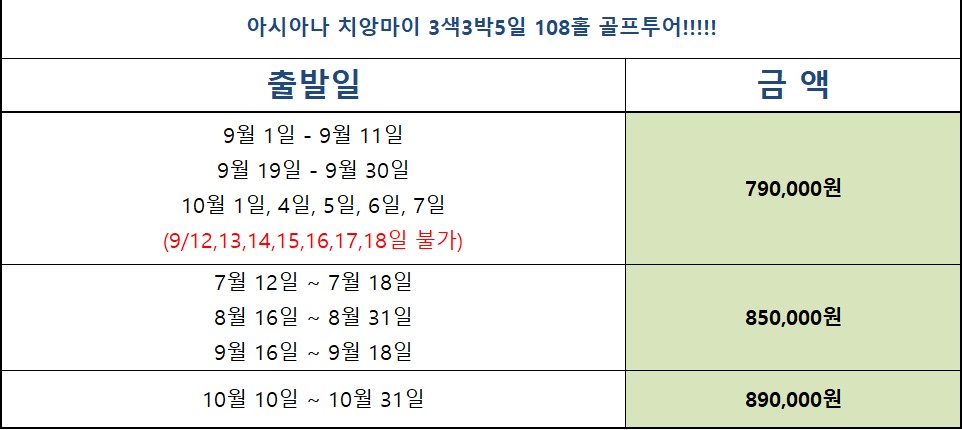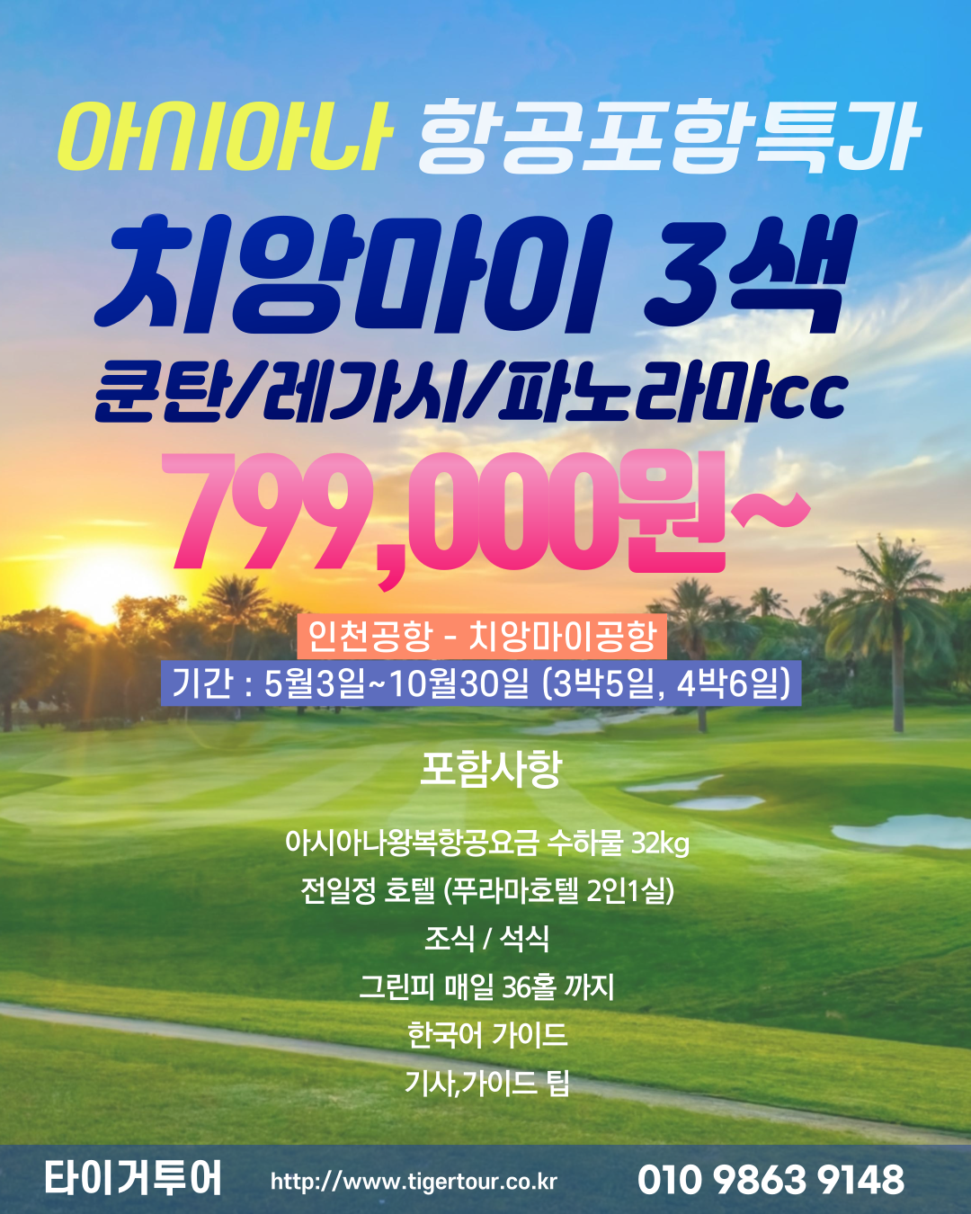 ✈[아시아나항공포함][태국치앙마이골프][대박특가][3박5일][4박6일]⛳출 발 : 5월3일 ~ 10월30일 [매일 출발]⛳
