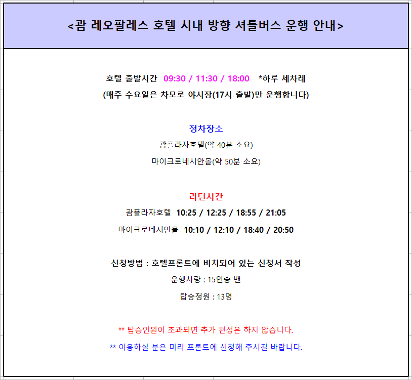 🚨 시내로 나가는 무료 셔틀 차량 운행