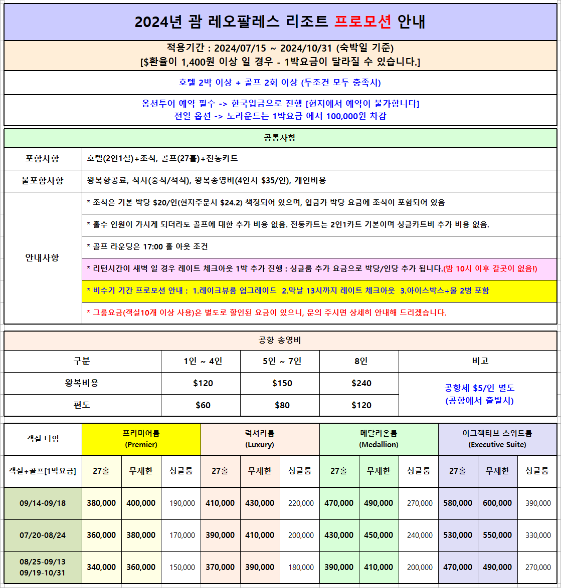 * 인보이스 수령 후 당일 전액[한국입금]을 입금하시면 숙소/골프장/항공이 확정됩니다.