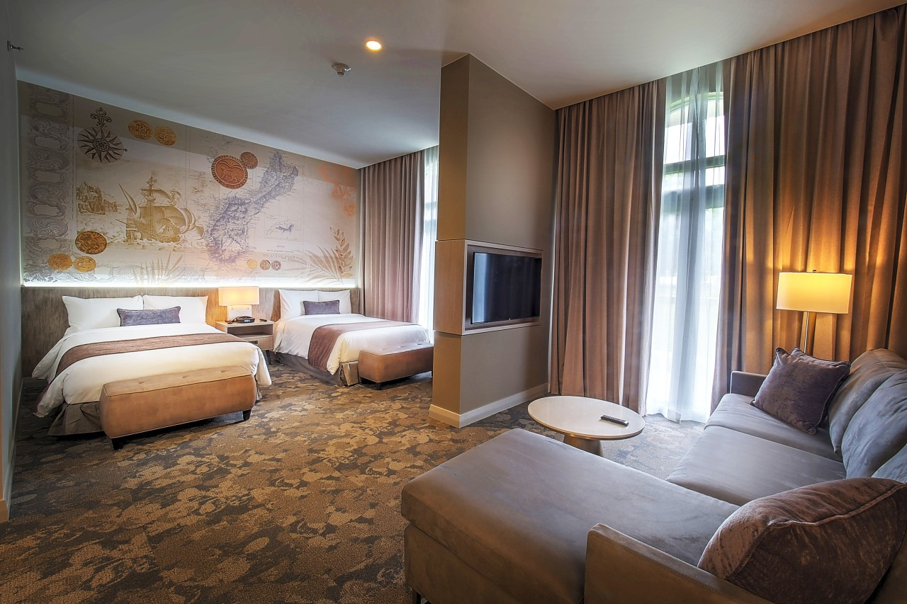 지상낙원이라 불리는 레오팔래스 리조트는 괌 국제 공항에서 차량으로 30분 떨어진 곳에 위치하고 있으며, 최고급 호텔과 장기 숙박이나 가족 숙박객을 위한 부엌이 있는 콘도형 객실도 갖추고 있습니다.
