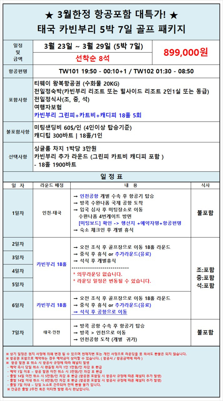 🔥 카빈부리 CC 한정 특가! 선착순 8명!