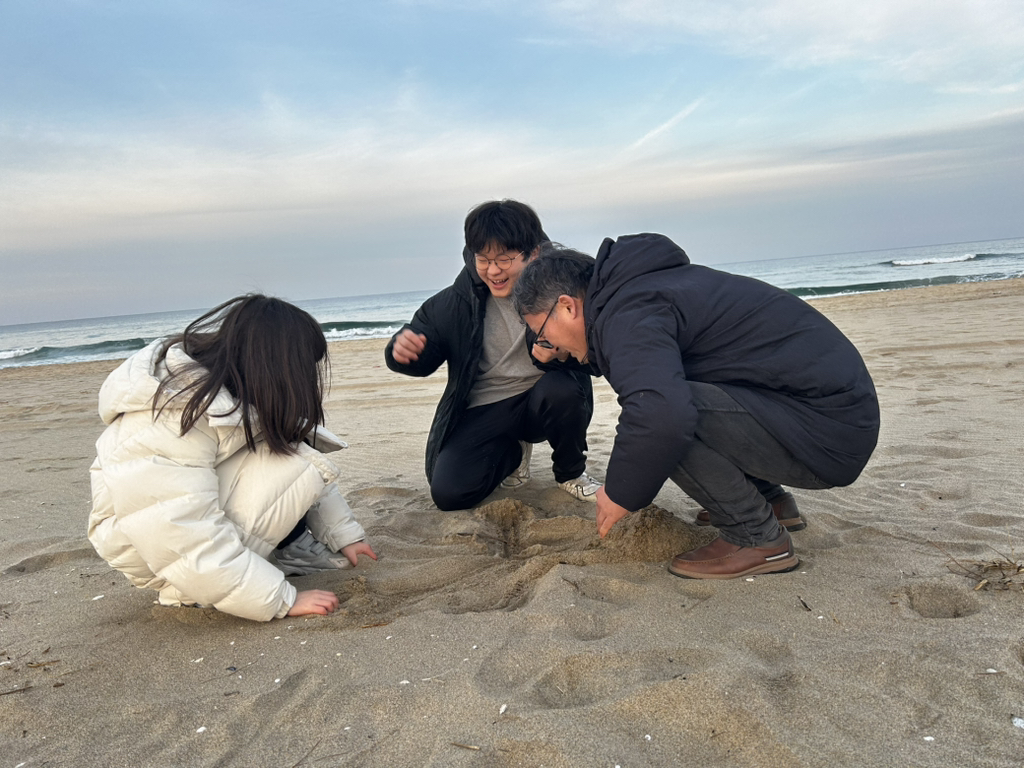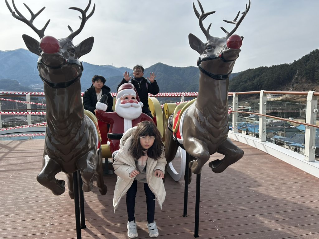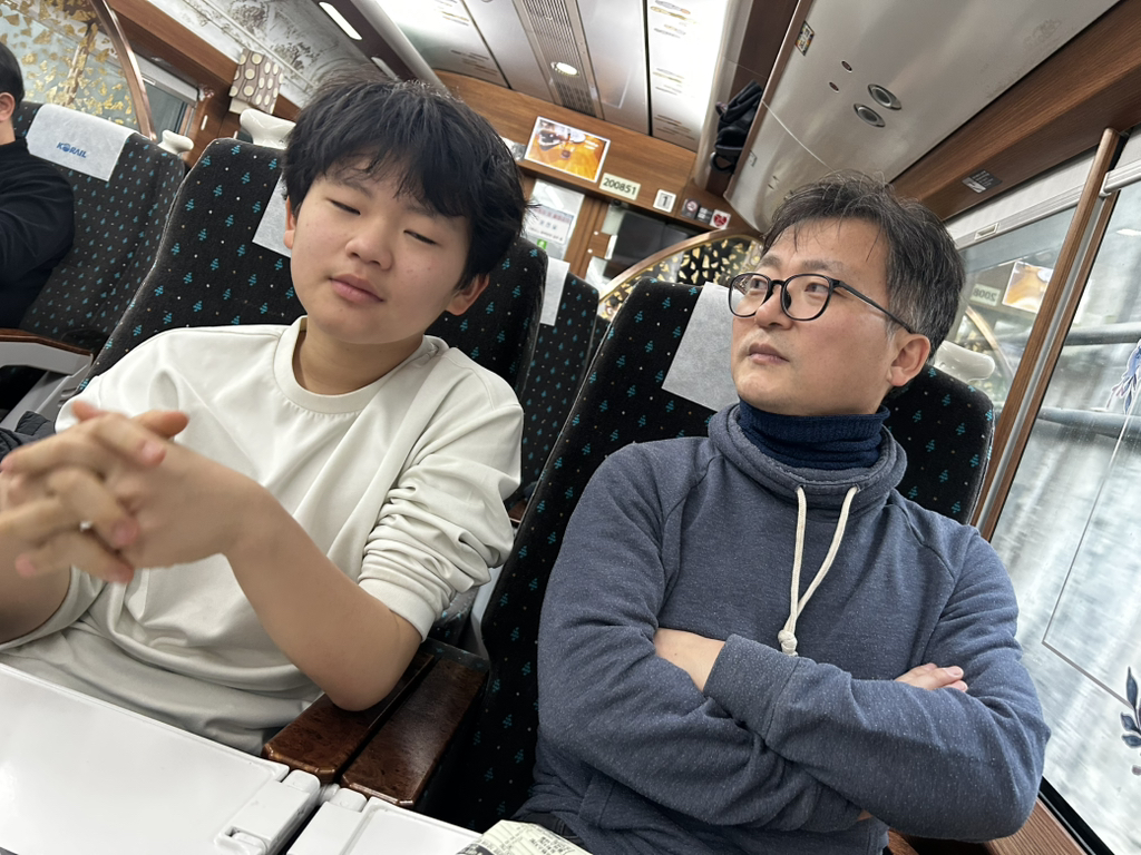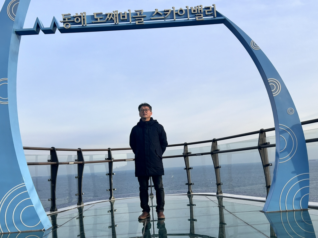 마지막 날은 아침 일찍 호텔을 나와서 촛대바위에 갔다. 해가 뜨는 시간은 이미 지났지만, 마음속으로 저 높이 솟은 바위 위로 떠오르는 해를 그리며, 심장이 붉게 물들었다. 여행의 주요 목적 중 하나가 더 있었는데, 요즘 기차를 타고 싶다는 생각을 자주 했다. 그래서 일요일날 출발하는 동해산타열차를 타기로 했다. 경북 봉화의 분천산타마을을 가는 일정인데, 갈 때는 동대구행 무궁화호 일반 열차를 탔고, 돌아올 때는 동해산타열차를 예약할 수 있었다.오십천을 따라 태백산맥을 오르는 기차 창밖으로 친구의 고향인 도계가 있어 추억에 잠겼다. 도계 어느 예식장에서 난 친구 결혼식 사회를 본 적 있다. 도계에서 통리 방면으로 올라가는 철길은 예전에는 스위치백 방식이었지만, 지금은 루프형이어서 올라간다는 느낌도 없이 그저 어두운 긴 터널이다. 관광열차는 그냥 스위치백 방식으로 올라도 좋을 듯한데, 너무 편한 것만 찾다보니, 낭만과 추억도, 역사도 사라지는 느낌이 들어 아쉬웠다. 동백산역을 거쳐 승부역을 지나 분천역에 다다랐다. 1월 중순이 지났지만, 산타마을 느낌이 많이 남아있었다. 먼저 도착한 협곡 열차 관광객들로 작은 동네가 사람들로 북적북적했다. 전망대와 주변은 아직 공사가 진행되고 있어서 미래의 산타 마을이 기대되었다. 돌아올 때는 기대를 엄청하고 동해산타열차를 탔는데, 동해산타열차라고 별 특이한 것은 없었다. 열차 4량 중, 내가 탄 1호차는 그냥 일반열차와 같았다. 가운데 2량의 구조가 좀 다르다는데, 가보질 못했다. 오히려, 분천역에 정차해있던 철암과 분천을 오가는 협곡 열차가 더 멋져 보여서 ‘다음에는 저걸 타야지’라는 생각을 했다. 저녁 무렵 동해역에 돌아왔다. 마지막으로 아들이 먹고 싶어 했던 동해막국수집에서 저녁을 먹고, 해가 남긴 이동 경로를 따라 서산으로 돌아왔다. 서산의 바다와는 색다른 느낌이 있는 동해 바다가 너무 좋고, 둘러보고 싶은 곳도 많기에 동해라는 도시에 다시 오고 싶은 생각이 많았다. 영동고속도로가 있어서 좋지만, 영월-삼척 고속도로가 빨리 개통되면 좀 더 자주 찾을 수 있지 않을까 생각했다. 오랜만의 힐링 여행이다.