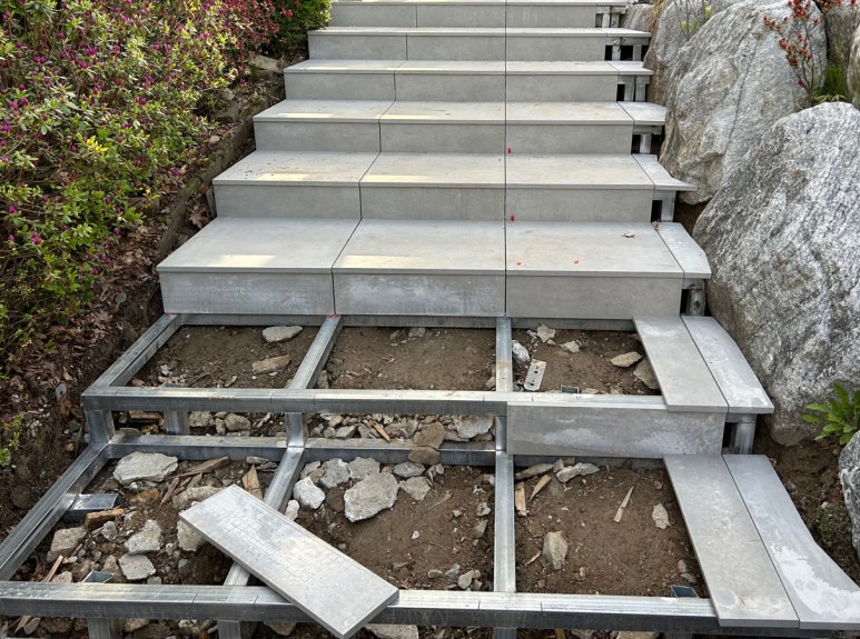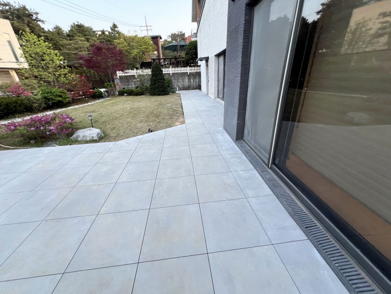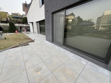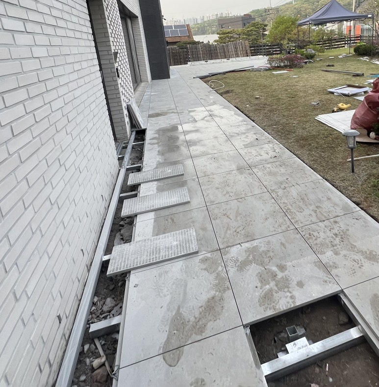 흙바닥에 설치하는 포세린 석재타일 시공을