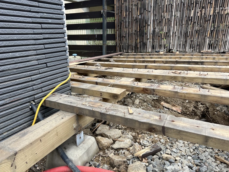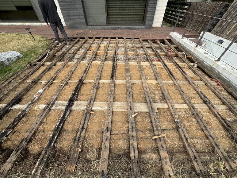 기존에 설치된 방부목(혹은 다른 자재)을