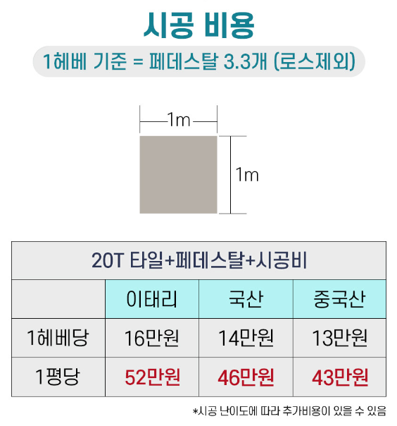 약 40헤베 면적의 석재타일 시공인데요.