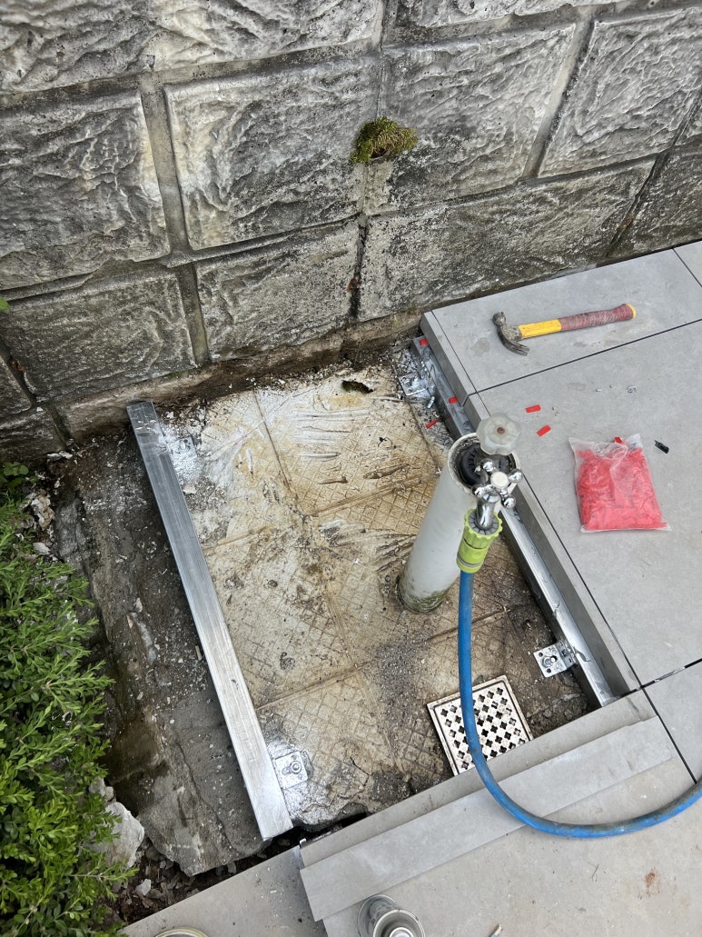 하지 작업을 끝낸 후 타일을 올려 시공하는데요