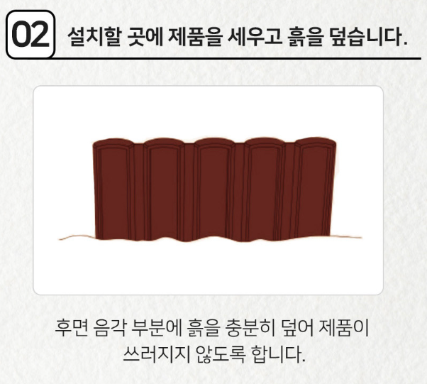 흙을 충분히 덮어 주어야 제품이 잘 고정됩니다!