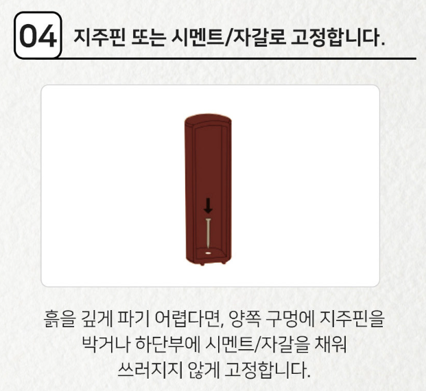 시멘트 or 자갈 등을 채워 고정합니다.