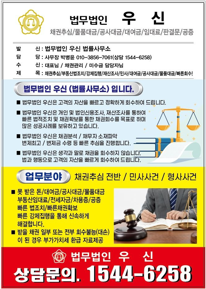 법무법인 민.형사 사건 및 채권전문 사무장 입니다.