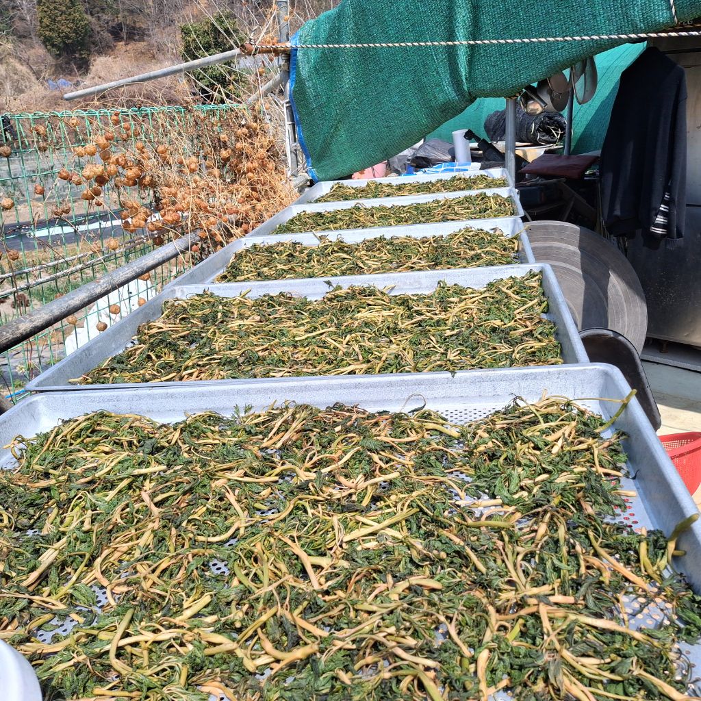 채반에 늘어 햇볕에 건조