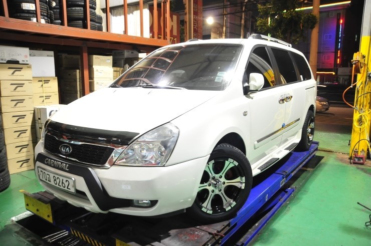 그랜드카니발에 툰드라 18인치휠과 금호타이어 씨티벤쳐프리미엄 235/55/R18 18인치 타이어조합으로~ 작업하면서~