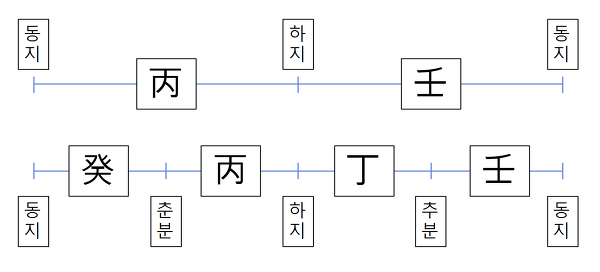 동지부터 하지까지 丙火의 기운과, 하지부터 동지까지 壬水의 기운으로 나뉘어지며,