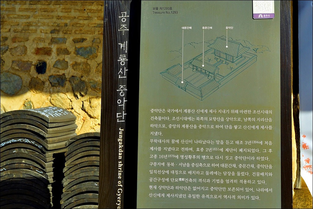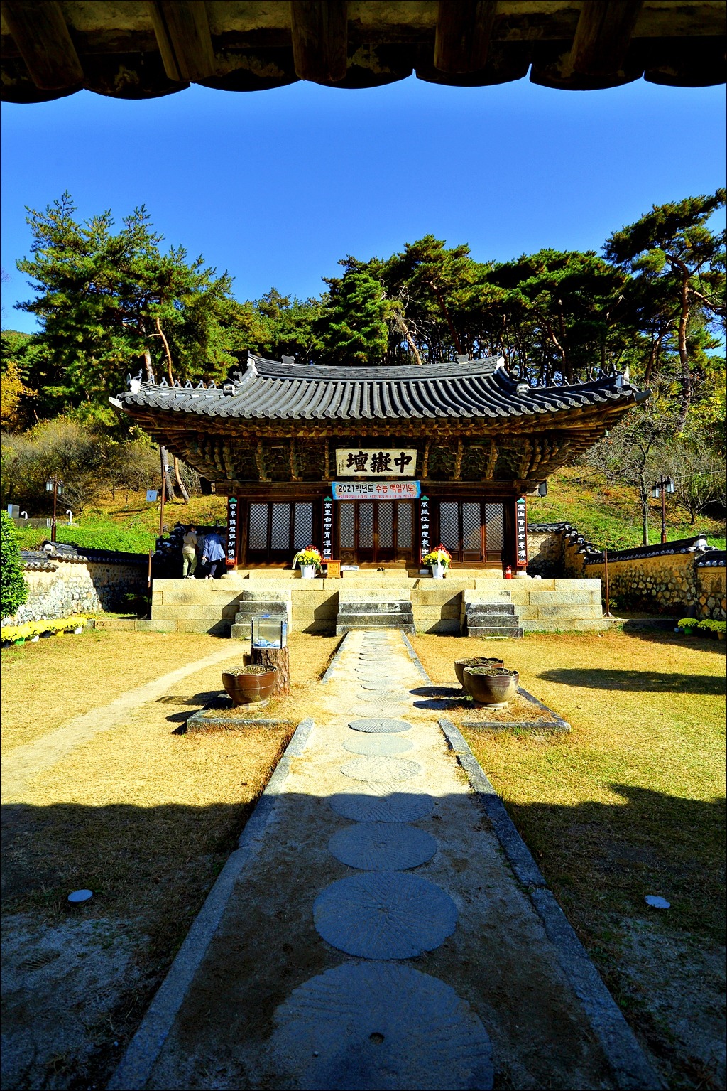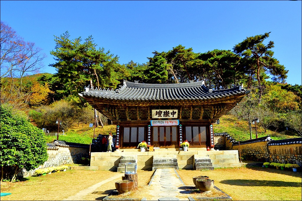 신라 때는 중사례(中祀禮)로 제사를 지냈고, 조선시대에는 봄과 가을 두 차례에 걸쳐 제사를 지냈으나 현재에는 향전(香奠:초상집에 부조로 내는 돈이나 물품)을 올릴 뿐이다. 현재의 건물은 정면 3칸, 측면 3칸의 다포(多包) 팔작집으로 조선 말기 건축 중 우수한 것이다. 우리 나라 산악신앙의 제단으로 중요한 의미를 지닌 중악단의 경역은 612㎡로 둘레에 축담을 둘렀고 전면에 이중의 내외문(內外門)이 있다. |