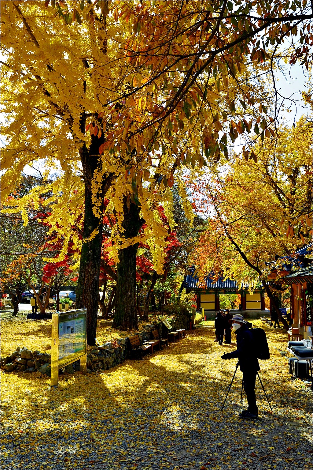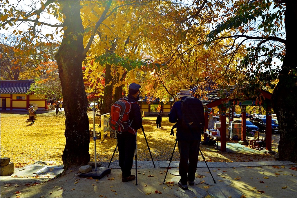 계룡산 신원사에서 은행나무를 담는 진사분들.. |