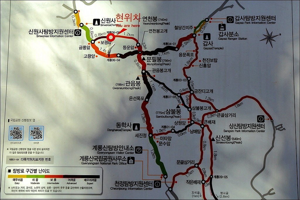 2020-11-08 (맑음, 8/13도) 계룡산 신원사 단풍산행 (홀로산행) 코스 : 신원사주차장 -> 신원사 -> 보광암 -> 전망바위 -> 등운암 -> 연천봉 -> 연천봉고개 -> 관음봉고개 ->관음봉(점심) -> 자연성릉 -> 삼불봉 -> 남매탑(상원암) -> 문골 -> 천정탐방지원센터 -> 동학사주차장. 거리및 산행시간 : 10.5km / 전체시간 6시간 35분 / 운동시간 5시간 59분 / 휴식시간 36분. 사진 청마(靑馬) |