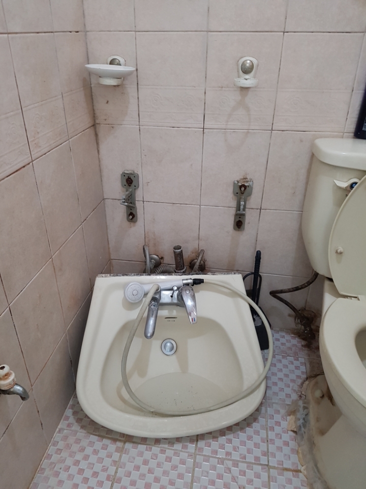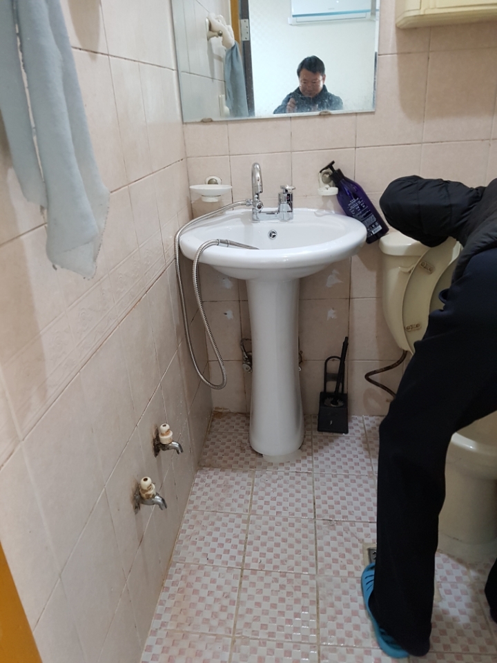 2018.11.22.10:00-12:00까지 오이도내 문화센타 근처 상가주택 원룸 화장실 세면대가 내려앉자 교체하였습니다. 작업순서는 냉수온수 잠금조치, 배관탈착, 세면기구 반출, 지지대 앙카볼트 분해, 앙카볼트 카팅 , 세면하부및 세면대 가작업, 마킹, 고정대 앙카드릴작업 고정, 세면대 기구부착, 배관연결, 실린콘 코킹등입니다.