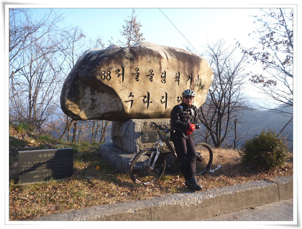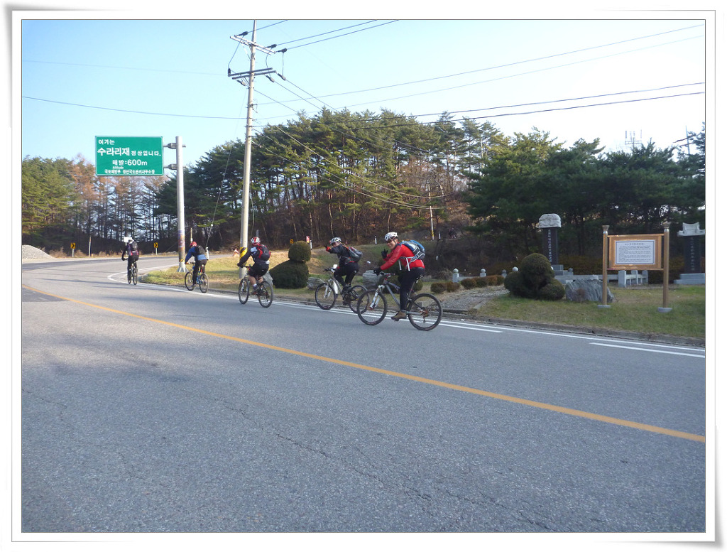 응달 서릿발과 빙판을 헤집고 잠깐 다운힐이라는 스피드님의 말대로 아주 긴긴 다운힐을 마치고 수라리재 정상에서 우동을 판다는 말에 힘을 내어서 내 달립니다.