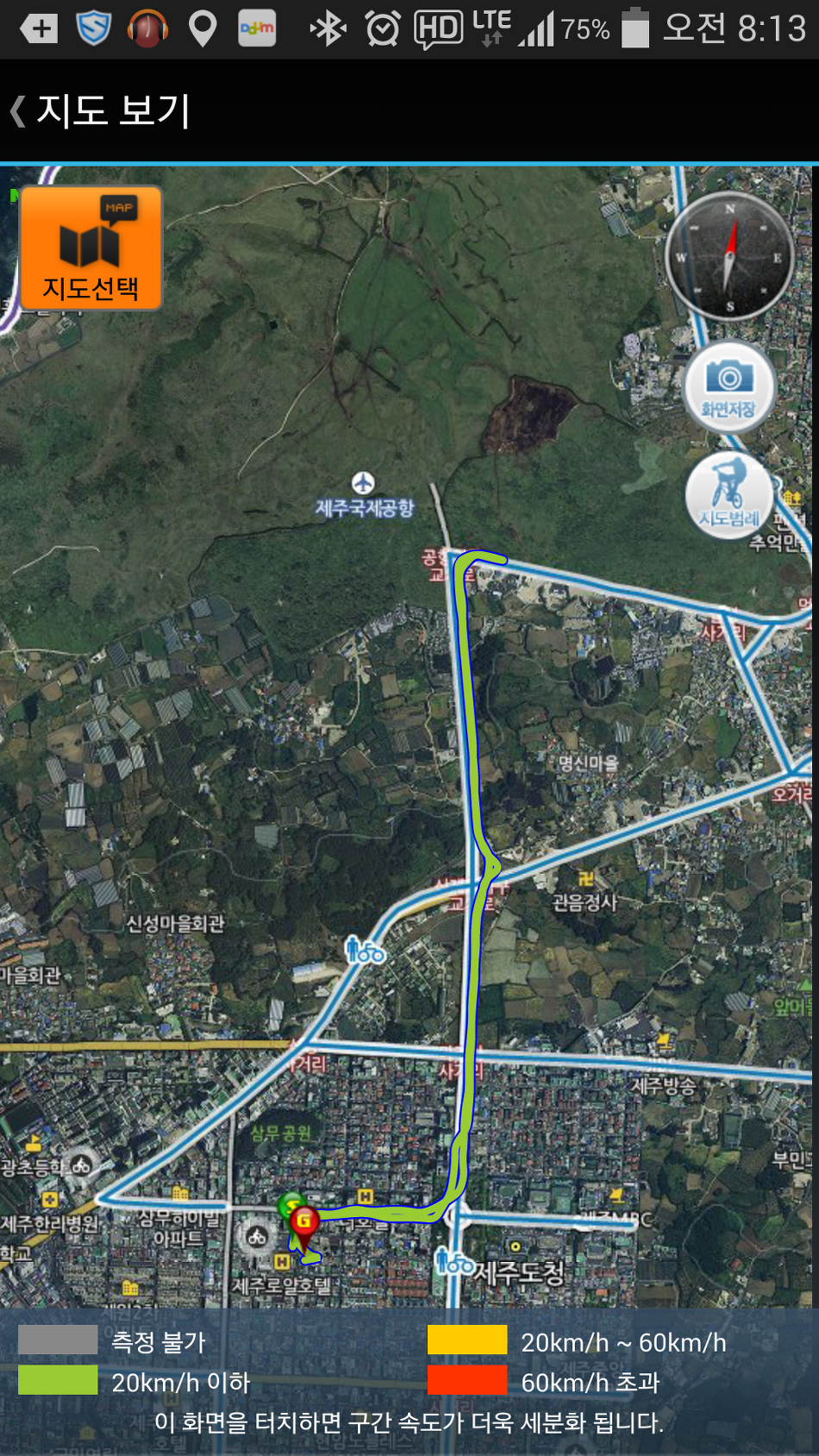 제주공항은 군사시설을 겸하고 있어서 그런지 지도에 표시되지 않군요...제법 걸었습니다...5km...