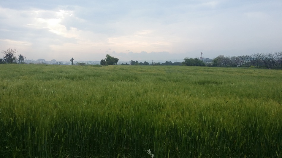 도로변에 넓직이 자리한 밀밭...보기 귀한 장면입니다...
