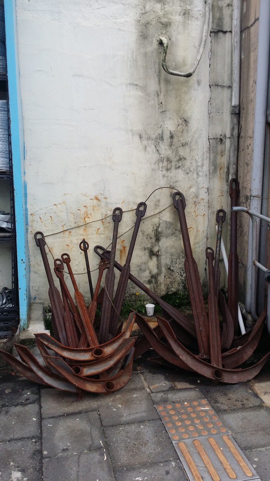 부두에서 공항가는 택시를 기다리는 동안에 도로변에 있는 선박 앵커들을 발견...