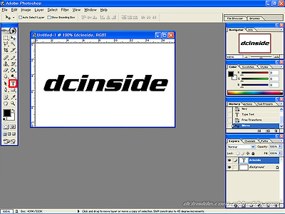 2. 좌측 툴박스 중간부분에 Horizontal Type Tool을 이용해 적당한 문구를 입력합니다. 글씨 색은 검은색으로 지정합니다.